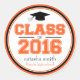 Sticker Rond Classe De 2016 Graduation Favor (Orange / Noir)