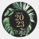 Sticker Rond Classe de 2021 Green Tropical Leaf Graduation
