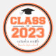 Sticker Rond Classe De 2023 Faveur De Graduation (Orange / Noir
