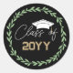 Classe noire d'autocollants de graduation avec l'année dans une police de caractères variées, une couronne de laurier vert, et une casquette de graduation blanche.