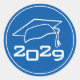 Ces autocollants bleus ronds de 3" présentent un casquette de mortier gradué et votre année de classe en lettrage blanc chic. Disponible également en petite taille. CORRESPONDANCE d'objets dans notre collection.