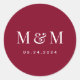Sticker Rond Classic Burgundy Red Monogram Typography Wedding