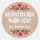 Un autocollant personnalisé "fait maison avec amour" sur un arrière - plan en papier kraft texturé. Faites-le le vôtre en ajoutant votre propre nom. Amusant pour la Saint Valentin, Noël ou toute occasion. Fait une jolie touche finale pour tous vos cadeaux faits à la main. Conçu pour vous par Blackberry Boulevard.