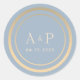 Sticker rond classique Mariage Monogramme bleu pou