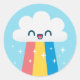 Sticker Rond Cloud arc-en-ciel mignon et excité avec étincelles