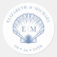 Sticker Rond Coastal Blue Beach Shell Mariage Monogramme