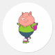 Sticker Rond Cochon à Patinage en ligne avec patins à rouleaux