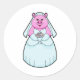 Sticker Rond Cochon en mariée avec Voile