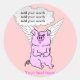Sticker Rond Cochon volant rose mignon