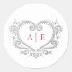 Sticker Rond Coeur argenté monogramme rouge texte sur mariage b