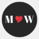 Sticker Rond Coeur rouge mignon personnalisées couple initiales