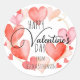 Cet autocollant personnalisable de la Saint-Valentin présente un design charmant avec une variété de coeurs aquarelles dans les tons rouge, rose et pêche, disposés dans un motif circulaire. Le texte "Heureuse Sainte-Valentin" est affiché en évidence au centre avec un mélange d'élégantes polices cursives et ludiques. En dessous, il y a une ligne personnalisable qui vous permet de la personnaliser avec votre propre nom ou message. L'ensemble est à la fois festif et romantique, ce qui le rend parfait pour ajouter une touche personnelle aux cadeaux, cartes ou décorations de la Saint-Valentin.