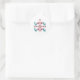 Autocollant moderne et artistique de Noël avec un motif scandinave/nordique qui comprend des coeurs rouges (avec des feuilles et des fleurs), des billes rouges (avec un design flocon de neige) et des rennes turquoise. Avec un nom que vous pouvez personnaliser.