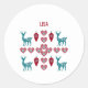Sticker Rond Coeurs de Noël scandinaves Rennes Baubles rouges