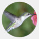 Sticker Rond Colibri à gorge rubis (femelle) avec pétunia