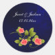Sticker Rond Collection de Mariages de fleurs de Rose bleu fonc