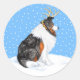 Ce Tri Color Collie est habillé d'un ensemble de bois et d'un collier rouge avec cloches à mâchoires - L'oeuvre de Danes-R-Us est un coup de coeur de Noël pour tous les amoureux de Collie
