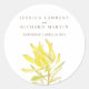 Belle aquarelle ressort jaune tulipe leucadendron autocollant mariage. Personnalisez avec le nom et la date du mariage de votre mariée et de votre mariée. Une partie de l'ensemble stationnaire du mariage de fleurs d'aquarelle jaune leucadendron. © Original watercolor art and design par Sarah Trett. www.sarahtrett.com pour www.mylittleedenweddings.com