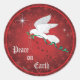 Personnalisez ce Beau Sticker de Noël "One of a Kind" ! Une colombe blanche sereine volant au milieu des étoiles portant une branche d'olivier avec des rubans rouges et verts...Souhaitant à tous..."Paix sur Terre" ! Il s'agit d'une création artistique originale de l'artiste Kerry Miller.