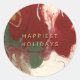 Ce design abstrait peint moderne présente des teintes de peinture rayées dans des tons de rouge foncé, vert de forêt, or, beige et ivoire mélangés dans un motif fascinant. Le texte Gold indique "HAPPIEST HOLIDAYS" dans une police moderne et élégante. Ces autocollants sont disponibles en 2 tailles : présentés ici dans la petite taille de 1 1/2 pouce de diamètre - idéal pour l'utilisation comme scellés d'enveloppe sur vos cartes de fin de année, comme étiquettes de faveur ou autocollants cadeau. La taille plus grande de 3 pouces de diamètre est un choix idéal pour les fêtes de fin d'année, les forfaits et plus encore !