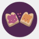 Le beurre d'arachide et la gelée est l'un des seuls aliments qui sont complètement compatibles ensemble et en amour. On y trouve deux tranches de pain au beurre d'arachide et à la gelée étalées et qui se regardent de manière adorable. Idéal pour les cadeaux de la Saint-Valentin ou de l'Anniversaire.