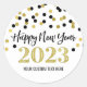 Autocollants personnalisés pour les années 2023 avec motif de confetti en or et noir avec texte moderne en lettres.