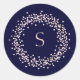 Sticker Rond Confetti rose vif sur bleu marine | Monogramme