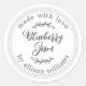Rustique et moderne, étiquette de pot de confiture de myrtille faite maison avec le texte fait avec amour, confiture de myrtille maison et votre nom dans une calligraphie manuscrite moderne sur fond blanc. Ajoutez simplement votre nom et le nom du produit à l'étiquette. Conçu exclusivement pour vous par Happy Dolphin Studio. Si vous avez besoin d'aide ou de produits assortis, veuillez nous contacter à happydolphinstudio@outlook.com.