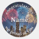 Sticker Rond Congratulations Custom Name Fireworks City Skyline