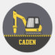 Sticker Rond Construction Yellow Excavator Breaker Nom des enfa