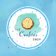 Cookies modernes script d'entreprise Typographie Sticker. L'autocollant moderne minimaliste et élégant a la police de texte des cookies de brosse script. Avec une illustration élégante de biscuits, toutes les couleurs sont modifiables, ajoutez votre logo.Parfait pour la boulangerie, l'entreprise maison, les pâtissiers, la petite entreprise pour la promotion.