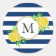 Sticker Rond Cool Marine Bande d'eau jaune citrons Monogramme