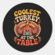 Sticker Rond Coolest Turkey At The Table Funny Thanksgiving Out