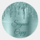 Sticker Rond Copie signée turquoise brossée Faux Parties scinti