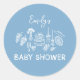 Un bleu poussiéreux Coquette moderne Baby shower tiré à main déco autocollant design typiquement mêle des éléments fantaisistes et ludiques à une esthétique contemporaine. La taille est un choix standard et populaire, mais d'autres formats sont disponibles. Le design se décline dans des tons doux, bleu bébé, comme couleur dominante, créant une atmosphère douce et féminine. "Coquette" évoque une atmosphère flirtante et charmante, avec des illustrations délicates et dessinées à la main d'éléments. Police manuscrite de typographie moderne avec polices sans-serif minimalistes pour un look équilibré et sophistiqué. Cette invitation évoque un sentiment de chaleur et d'excitation pour la célébration à venir, mêlant la joie d'un baby shower à un design artistique et tendance.