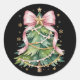 Sticker Rond Coquette Bow Noël Arbre Fête Fille mignonne