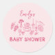 Un Coquette rose moderne Baby shower tiré à la main design autocollant typiquement mêle des éléments fantaisistes et ludiques à une esthétique contemporaine. La taille est un choix standard et populaire, mais d'autres formats sont disponibles. Le design est dominé par des tons doux et roses, créant une atmosphère douce et féminine. "Coquette" évoque une atmosphère flirtante et charmante, avec des illustrations délicates et dessinées à la main d'éléments. Police manuscrite de typographie moderne avec polices sans-serif minimalistes pour un look équilibré et sophistiqué. Cette invitation évoque un sentiment de chaleur et d'excitation pour la célébration à venir, mêlant la joie d'un baby shower à un design artistique et tendance.