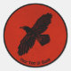 Une simple silhouette noire d'un Corbeau (Corvus corax) sur un arrière - plan rouge. L'image du corbeau a reçu un léger effet "rugueux" ou "usé". Ajoutez votre propre texte.
