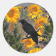 Sticker Rond corneille noire & tournesols art
