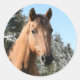 Cheval Dun en arrière - plan enneigé. Peut-être pour Noël pourrait être juste un joli autocollant photo hiver