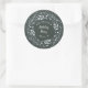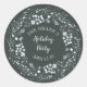 sticker de fête avec une couronne d'hiver grise encadrant votre texte personnel. Affiché avec un arrière - plan vert velours. Un sceau parfait pour un cadeau de fête de bureau, ou peut-être comme un autocollant cadeau de fête de Noël en famille.