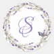Couronne de lavande avec un papillon violet sur un arrière - plan blanc. Le monogramme est modifiable. La couleur Arrière - plan peut être modifiée.
