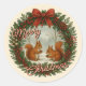Cet autocollant de vacances magnifiquement conçu présente une couronne ornée d'un arc jaune or, de feuilles verts, de baies rouges et de deux adorables écureuils. Son design élégant mais rustique saisit à merveille l'essence de la période des fêtes de décembre et séduit ceux qui apprécient les illustrations artistiques. L'autocollant offre également des options de personnalisation, vous permettant de le personnaliser avec votre salutation personnalisée, ce qui en fait un choix réfléchi pour diffuser la joie des vacances.