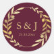 Sticker Rond Couronne d'or Monogramme bordeaux foncé Mariage in