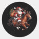 Sticker Rond Cowboy Père Noël Monter Un Cheval Noël Drôle Weste