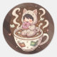 Sticker Rond Cozy Cat Coffee Adventure Art