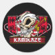 Sticker Rond Crâne de Kamikaze avec épée japonaise