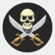Sticker Rond Crâne de pirate 3D et épées croisées