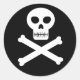 Des os crâniens blancs sur un arrière - plan noir. Donnez un autocollant pour effrayer les piqueurs ou les traiteurs de pirates avec leurs bonbons.
