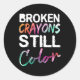 Sticker Rond Crayons cassés Couleur toujours Tal Sensibilisatio
